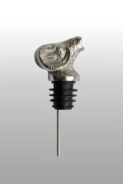 Flaschenausgießer im Widdermotiv aus Edelstahl. Der Flaschenausgießer hat einen Durchmesser von 3,0 cm und eine Höhe von 4,0 cm.
