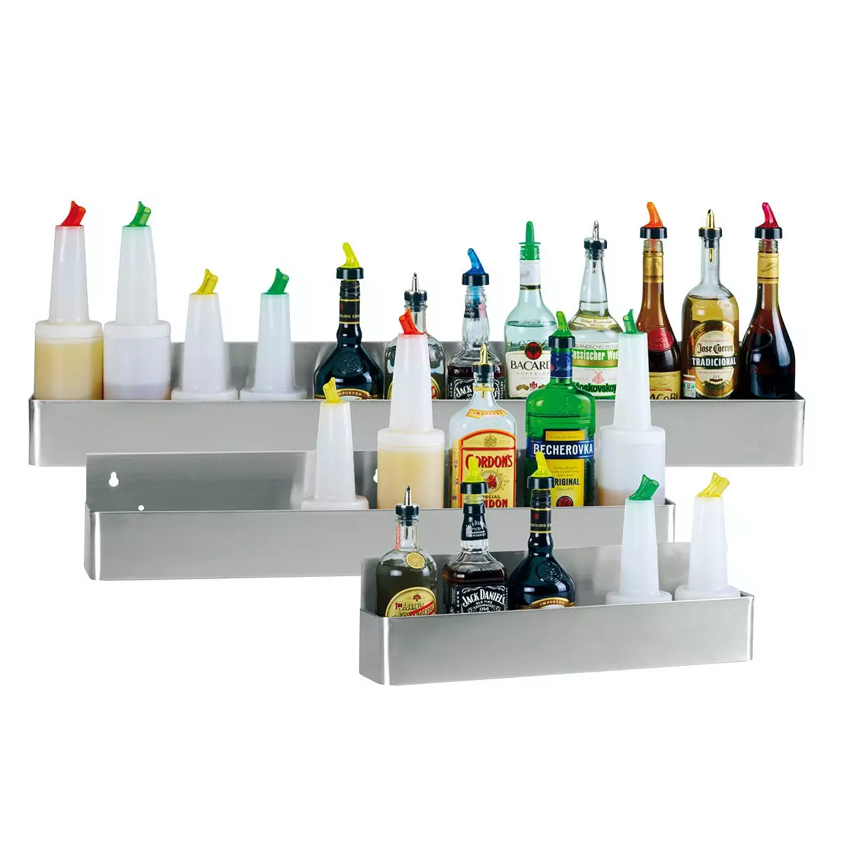 erweiterbarer Wangruppenhalter; aus stabilen Metall für lange Lebensdauer; garantiert einen sicheren Halt Ihrer Spirituose; macht Ihr umfangreiches Spirituosenangebot zum Blickfang; für 5 Flaschen
